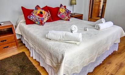 Cálida habitación con cama matrimonial y baño privado, especial para visitantes de paso, vacaciones o en plan de trabajo.